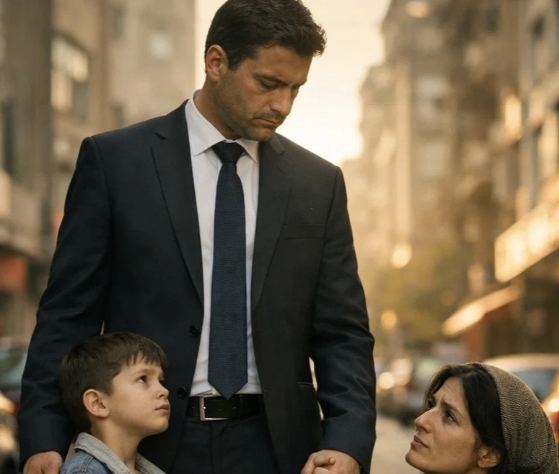 Bogătașul a trecut pe lângă cerșetoare fără să încetinească, până când fiul său s-a oprit brusc, i-a strâns mâna cu putere și a șoptit cu